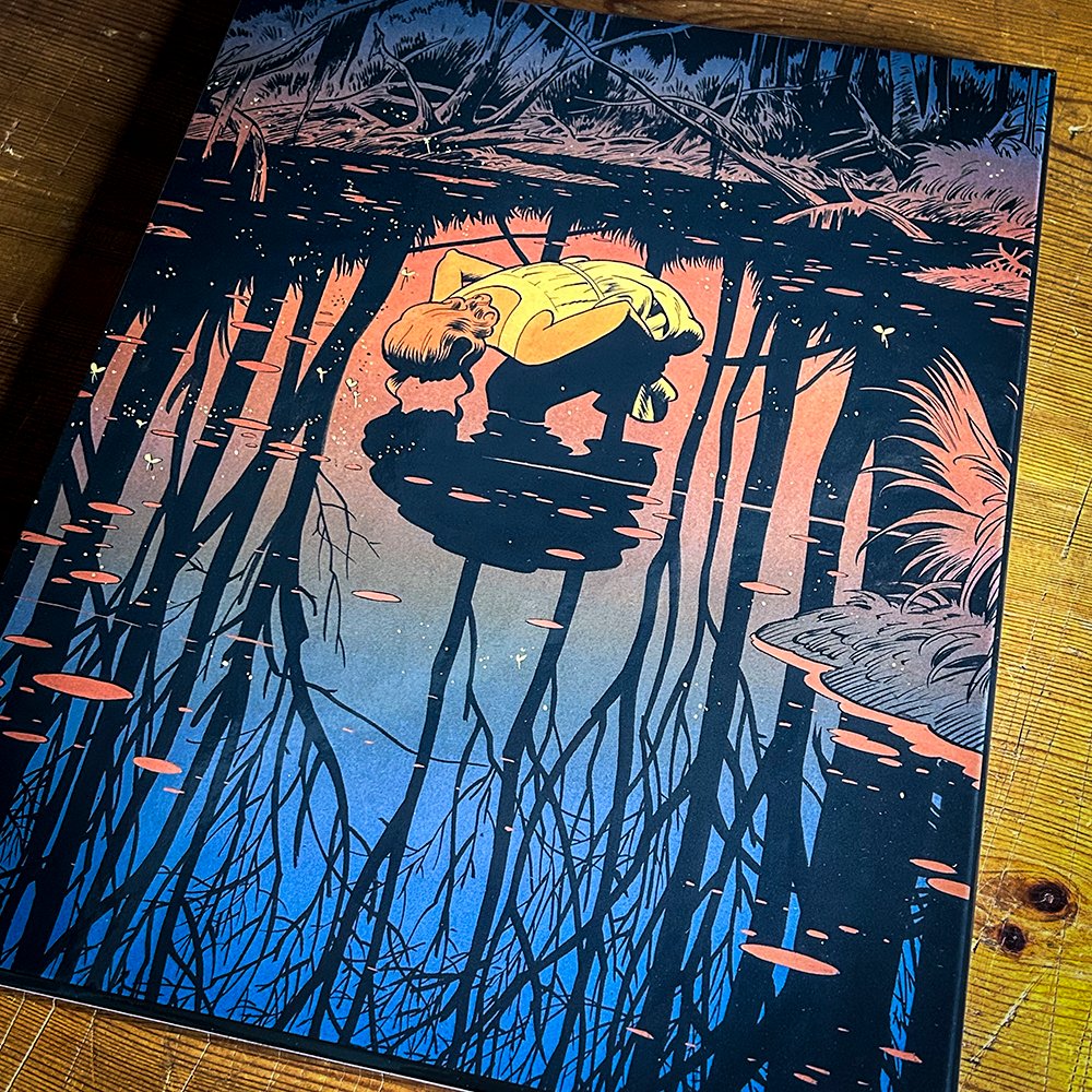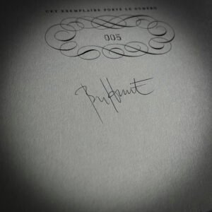 – L'intégralité de l'album, soit les 68 planches en N&B . – 26 pages de cahier graphique couleur reprenant des visuels inédits, des recherches, des illustrations, – Le storyboard complet, – 22 pages de planches crayonnées, – Une sérigraphie réalisée pour le tirage de tête - 6 passages, – l'album est inséré dans un magnifique coffret pelliculage vernis brillant représentant une illustration originale  !