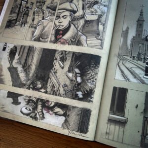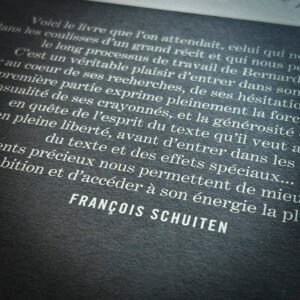 – L'intégralité de l'album en couleur et en impression HUV pour coller au plus près des intentions de Yslaire, – 70 pages de cahier graphique couleur reprenant des visuels inédits, des recherches, des illustrations, les crayonnés de l'album et surtout les uniques 15 planches réalisées manuellement par l'auteur ! – Un tiré à part format 26 x 33,5 cm signé par les auteurs, – Une préface de Jean Luc Fromental et une postface de François Schuiten. – Les pages de gardes avant et arrière sont imprimées sur un beau papier Fedrigoni rouge teinté dans la masse, agrémentés avec des croquis de Yslaire.